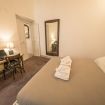 L’appartamento presenta una zona living con divano letto matrimoniale, un’ampia camera da letto matrimoniale, una cucina, una piccola sala da pranzo ed un bagno. Al fascino storico dell’abitazione con soffitti in legno a cassettoni, si aggiungono i comfort più moderni, come aria condizionata e connessione Wi-Fi gratuita.