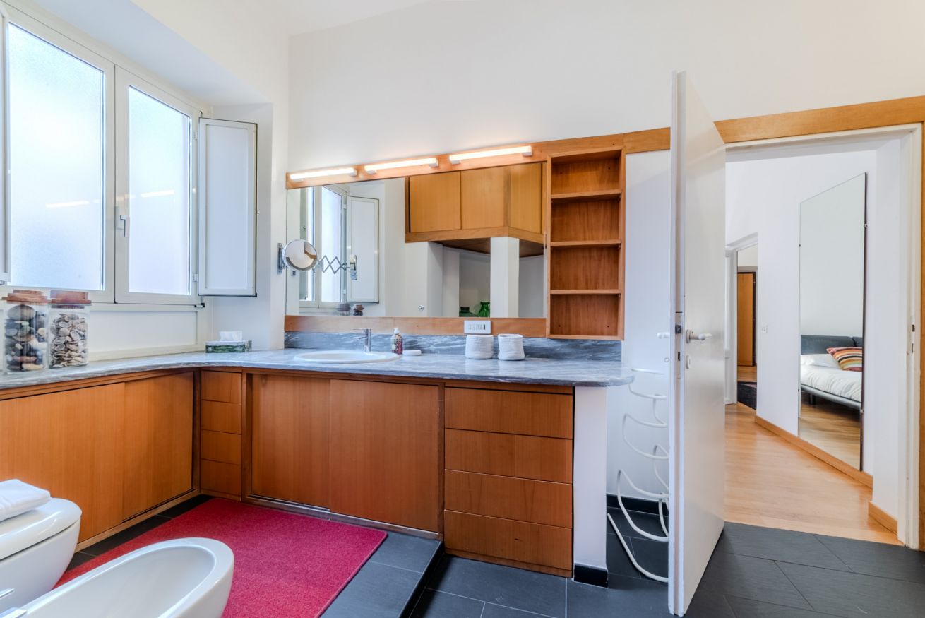 Spazioso appartamento a due passi dai Musei Vaticani, ideale per ospitare fino a 6 persone. Situato al 4° piano con ascensore di un palazzo residenziale nell’area di San Pietro, si trova a pochi metri dall’ingresso dello storico Mercato Trionfale e dai Musei Vaticani.