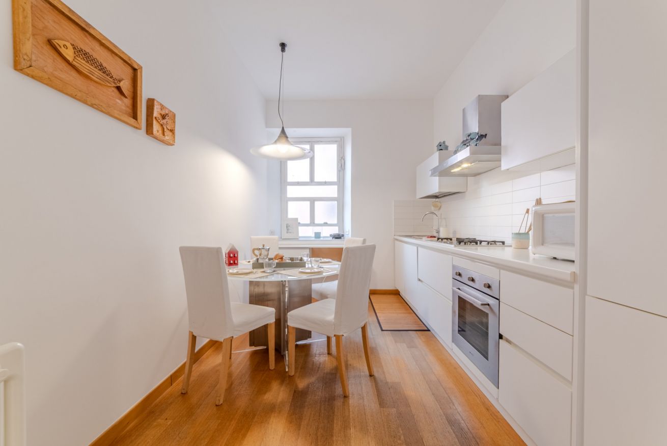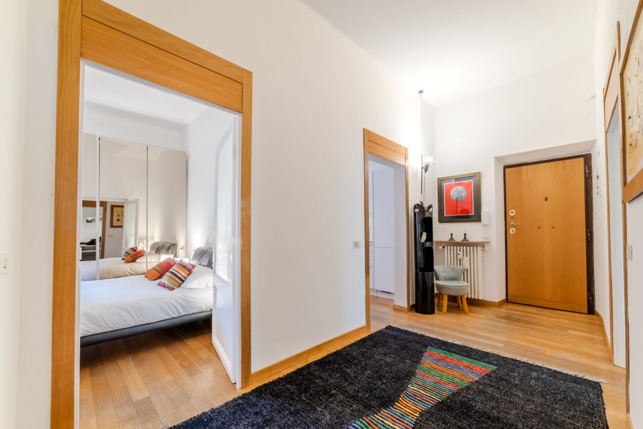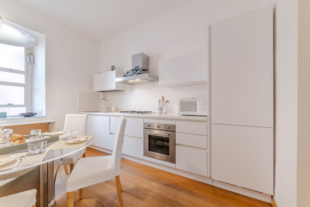 L’appartamento è composto da due ampie camere da letto matrimoniali, un confortevole soggiorno con divano letto matrimoniale, una moderna cucina completamente attrezzata e un grande bagno accessibile sia da una delle camere da letto che dalla stanza adibita a lavanderia.