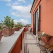 Elegante appartamento con vista panoramica sito al sesto piano con ascensore di un palazzo signorile, a pochi passi da piazza del Popolo, può ospitare sino a 5 persone. L'appartamento appena ristrutturato con forniture di lusso è composto da 2 camere matrimoniali, un moderno soggiorno con comodo divano letto singolo, angolo cottura completamente accessoriato. L'appartamento ha 2 bagni con doccia ed un grande balcone con vista panoramica su villa borghese, le cupole delle chiese del centro storico e l'Altare della Patria. Wifi e AC e TV wilde screen in tutte le camere.