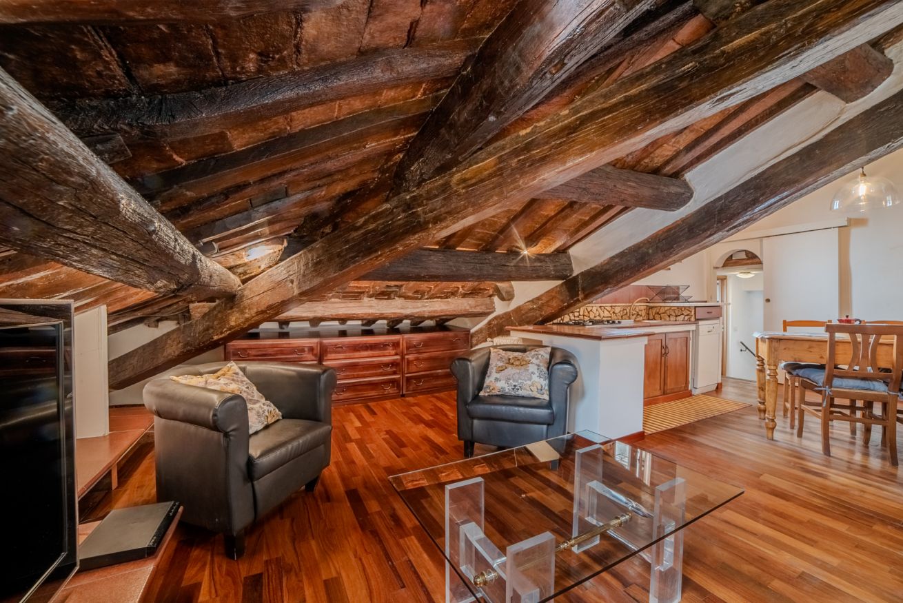 Nel cuore del quartiere storico di Trastevere, l'appartamento si trova al 3° piano senza ascensore di un palazzo storico. L’appartamento può accogliere comodamente fino a 8 persone. L'appartamento è su due piani: al piano inferiore si trovano 2 camere da letto, di cui una matrimoniale ed una con due letti singoli, un soggiorno ed un bagno con doccia; al piano superiore vi è un secondo soggiorno con divano letto matrimoniale ed angolo cottura, una seconda camera da letto matrimoniale ed un secondo bagno con doccia. Da qui avrete anche accesso ad una romantica piccola terrazza panoramica. Al fascino storico dell’appartamento, si aggiungono i comfort più moderni come impianto di aria condizionata e connessione wi-fi gratuita.